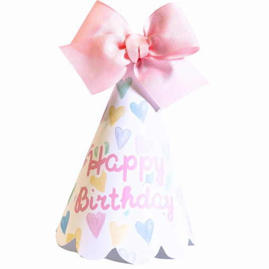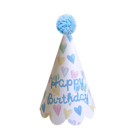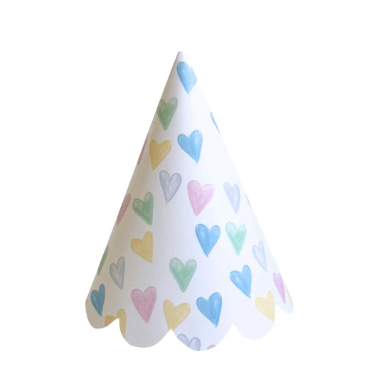 Printable Paper Party Hat – Watercolor Pastel Hearts Birthday Decor