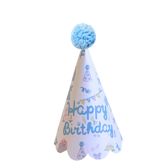 Printable Paper Party Hat – Blue Watercolor Birthday Decor